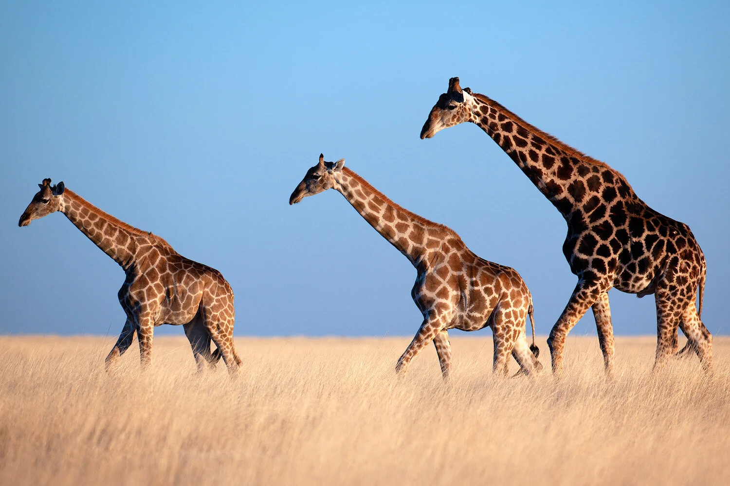 TWO FEMALES AND A MALE GIRAFFE, ETOSHA, NAMIBIA